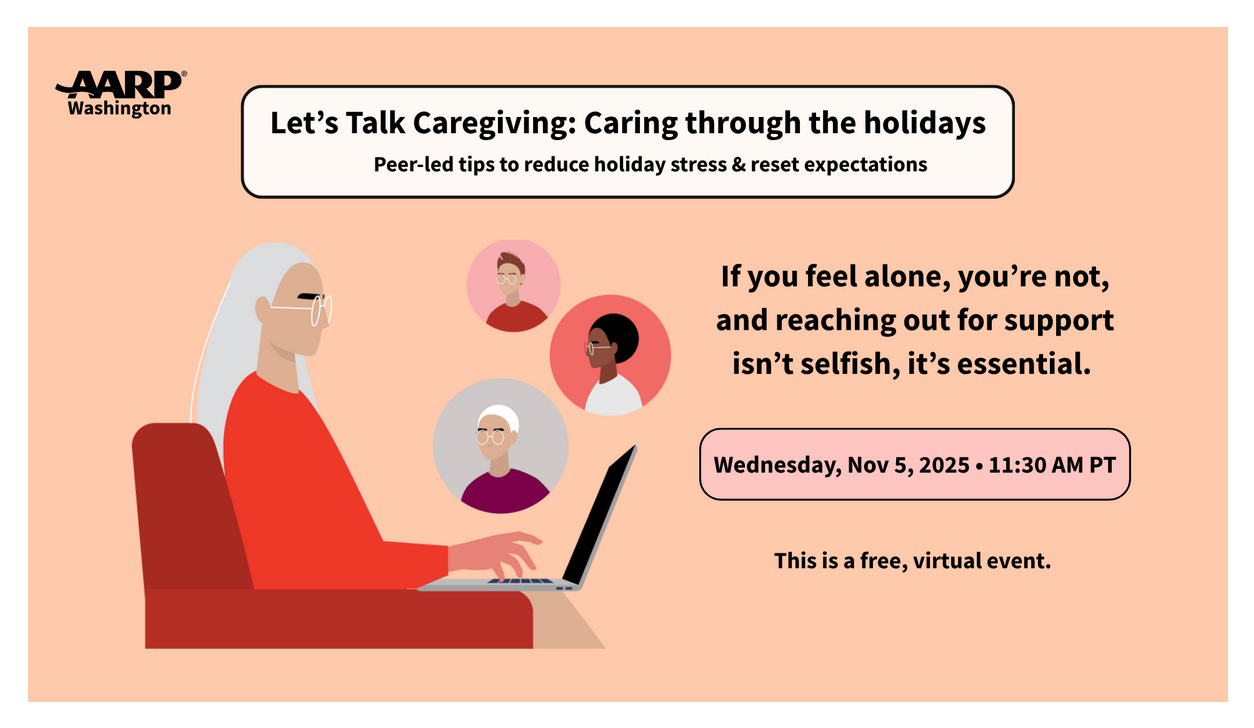 Join me for AARP Washington State's new virtual series - Let's Talk Caregiving - I'll be moderating and can't wait to see you!